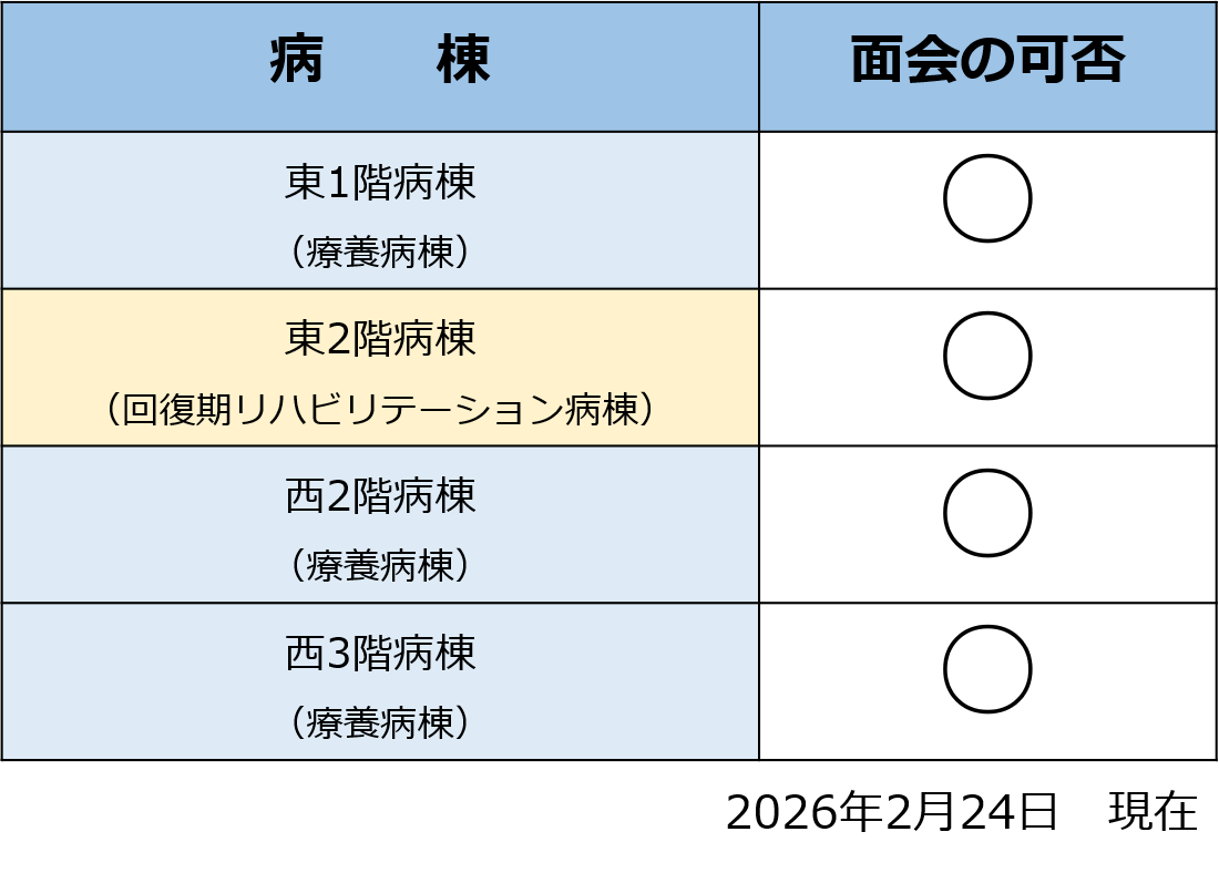 感染症の流行等により病棟によって面会の可否が異なる場合がございます。